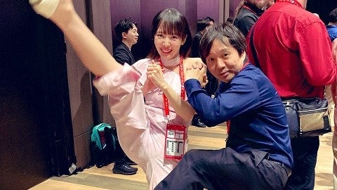世界麻雀のレセプションパーティーに参加した小山は、「岡田紗佳に始球式の再現をしてもらった。堀慎吾を添えて。」と、プロ雀士の岡田紗佳と堀慎吾の写真を公開。そして「見よ!この柔軟性の差を!」と、足の上げ方に大きく差があることについて触れた。