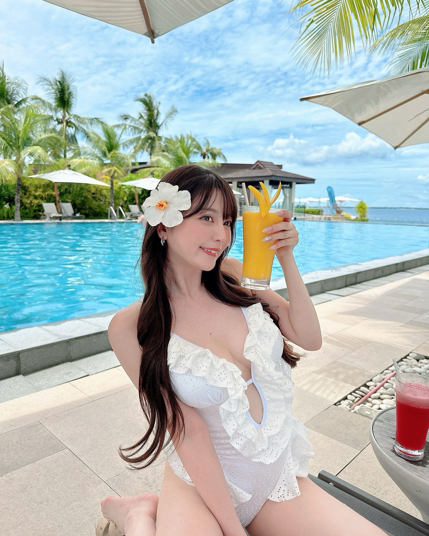 「プールサイドに舞い降りた天使」堀尾実咲、リゾート満喫ショットに反響 白ワンピ水着×マンゴージュースが絵になる1枚 | 話題の投稿