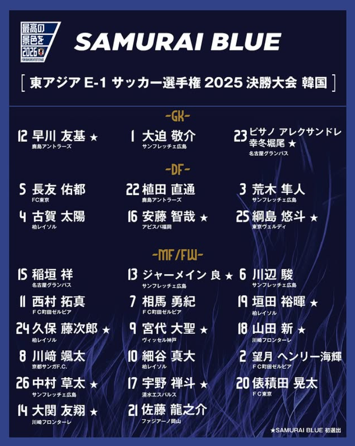 サッカー日本代表・SAMURAI BLUEが2日、東アジアE-1サッカー選手権2025(韓国開催)の登録メンバーを公式S…