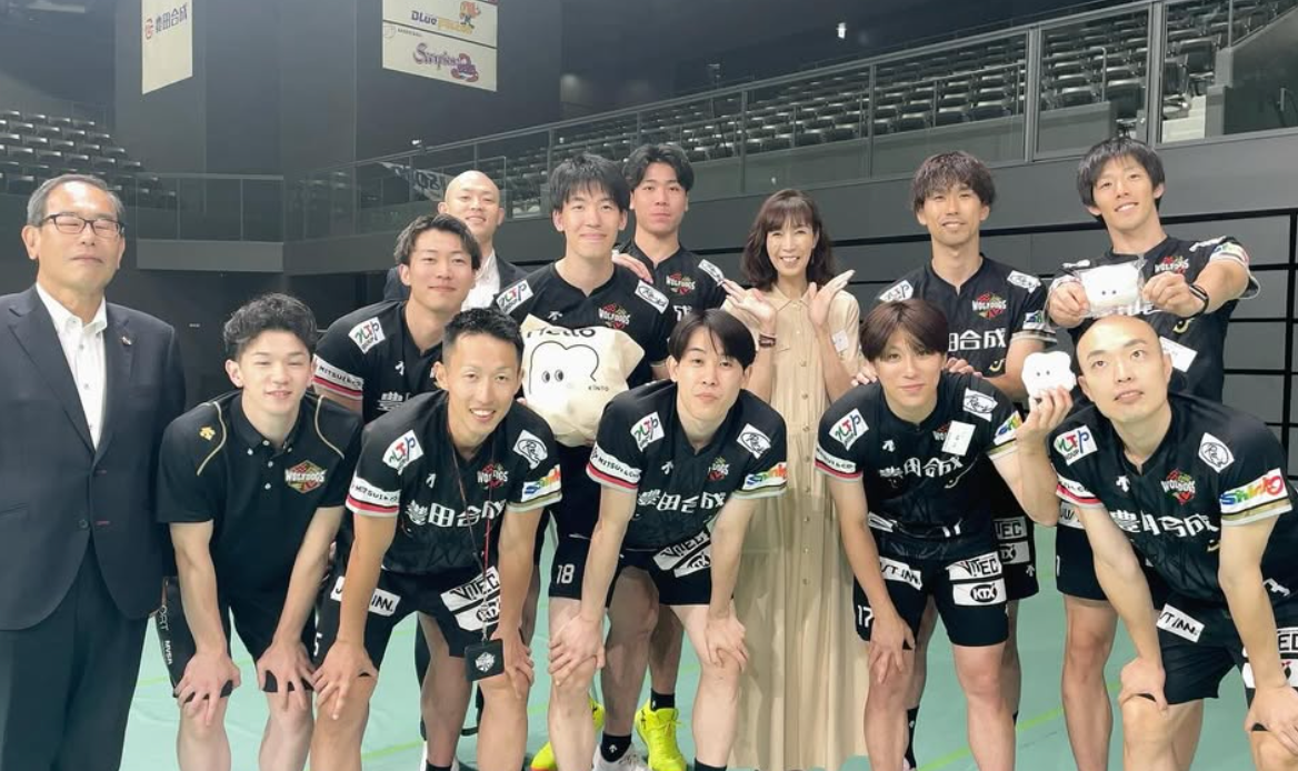 【画像】名古屋チームと笑顔の記念ショットバレーボール元日本代表で元Vリーグ理事、現SVリーグPRアンバサダーの大林素子(…