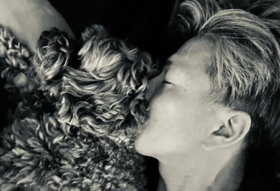 投稿画像には、木村拓哉が愛犬をやさしく抱き寄せて過ごす様子がモノクロで切り取られている。