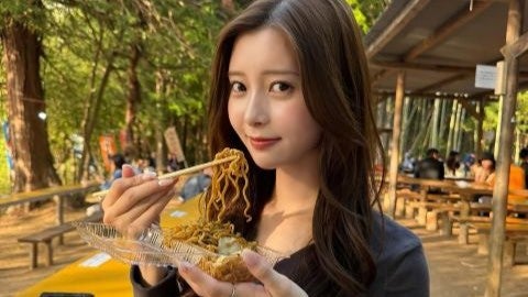 どうやら自然豊かな場所へ訪れたことを報告しているようだ。自然の中で食べる焼きそばは、さぞかし美味しかっただろう。食べている姿まで可愛い投稿になっている。