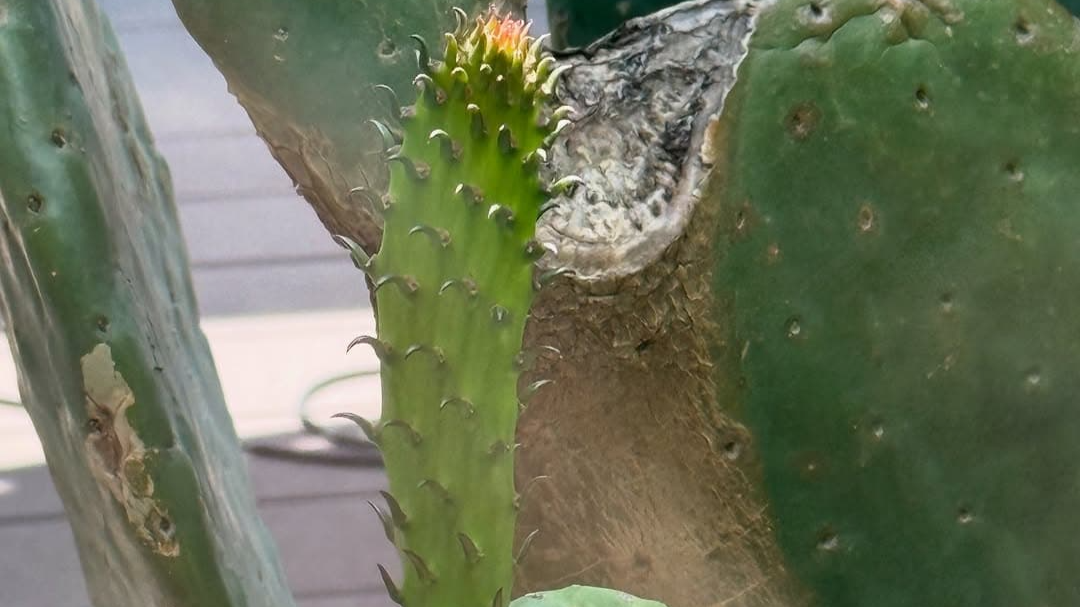「サボテンの花の蕾がついたのかと喜んでたら、サボテンの芽でした。。ま、それも嬉しいですが、笑