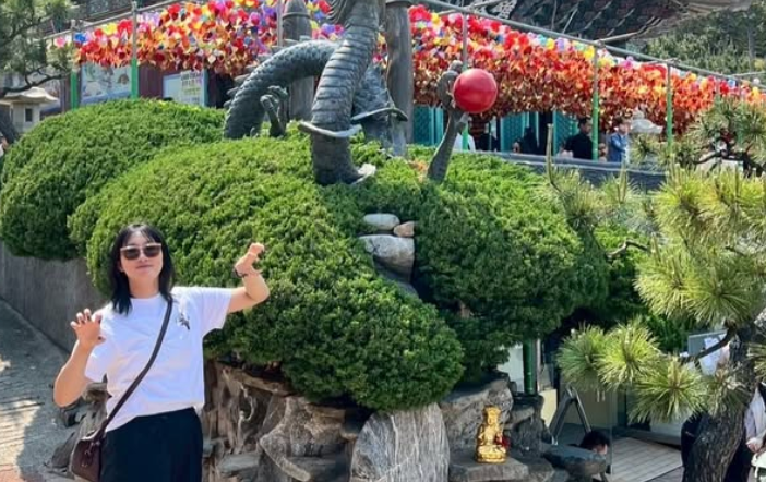 投稿画像には、韓国・釜山の人気観光地「海東龍宮寺」の様子が写されている。