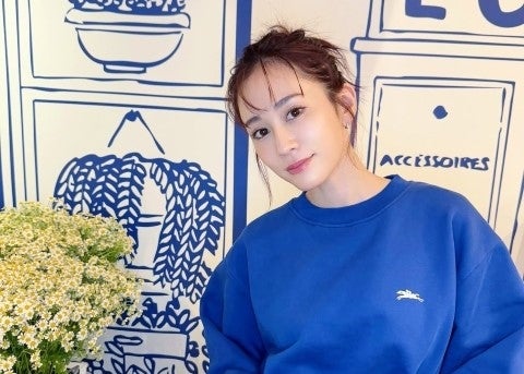 続けて「夏は白のバックが使いたくなる。ロンシャンはclothesもキュートだよね。」と綴り、投稿を締めくくった。鮮やかなブルーのスウェットと白いバッグの組み合わせが、洗練された中に夏らしい軽やかさを添えている。背景のアートと花々が彼女の透明感をさらに引き立て、全体がまるでパリのブティックに迷い込んだかのような空気を纏っている。