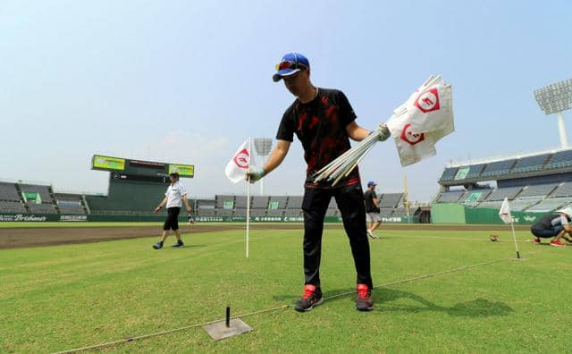 第107回全国高校野球選手権宮崎大会(県高校野球連盟、朝日新聞社主催)は5日、宮崎市のひなたサンマリンスタジアム宮崎で開幕する。4日はサンマリンとアイビースタジアムで、県高野連の関係者らが会場の設営や設備の確認などの準備をした。
