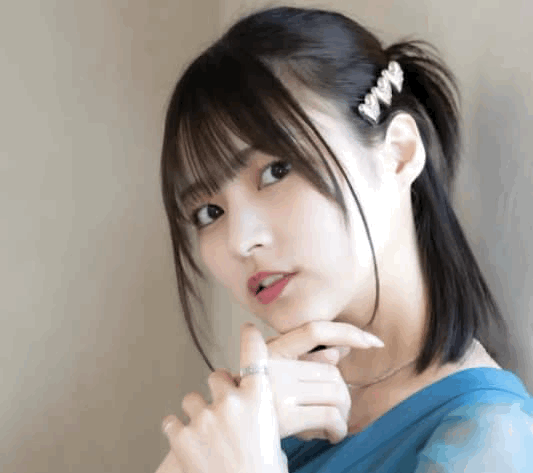 写真には、青のコーデでさまざまなポーズで決める宇咲の姿を披露。