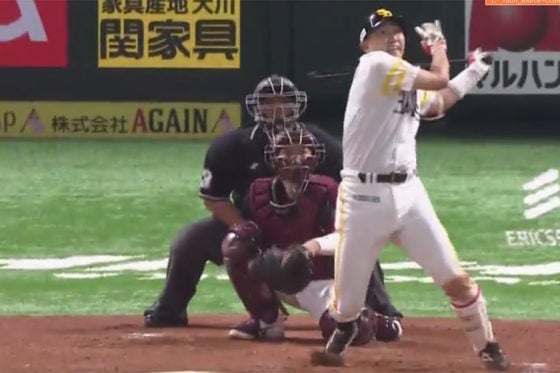 チームに流れを呼び寄せる本塁打が飛び出した。4回。先頭で打席に入った内川が、苦戦していた辛島を捉えた。2ボール2ストライクからの5球目。内角高めの難しいボールを腕をたたんで捉えると、打球は左翼ポール際のスタンドへと消えた。