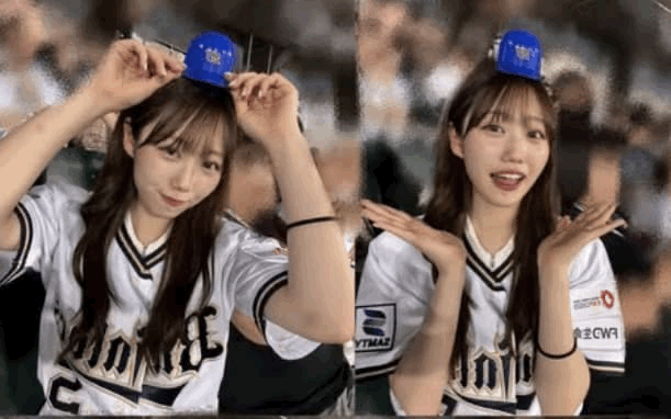 写真には小さい帽子を載せる姿や球場グルメを食べる姿を披露。