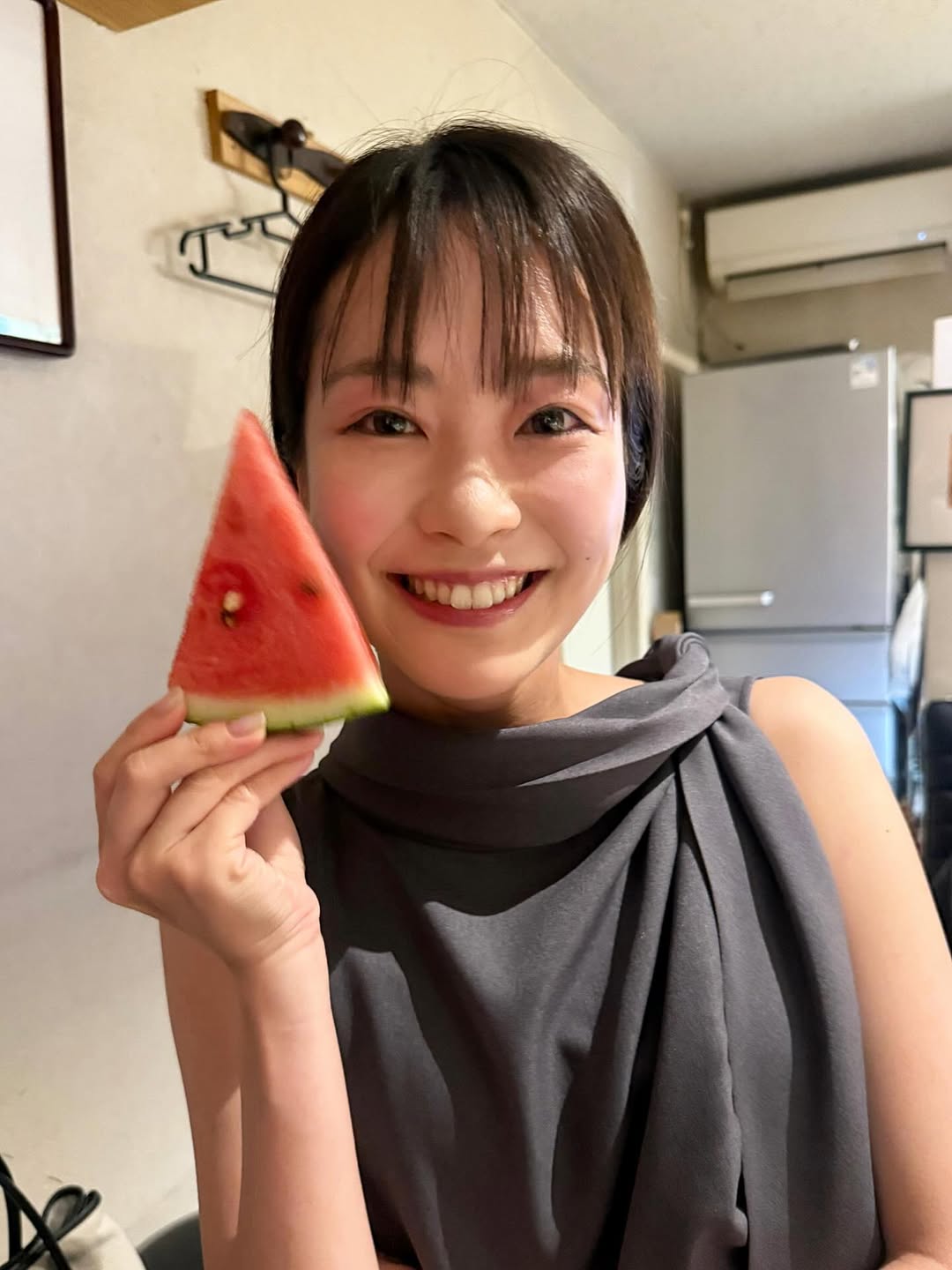 テレビ朝日アナウンサー・下村彩里、今年初のスイカを持った自撮りを公開! | 話題の投稿