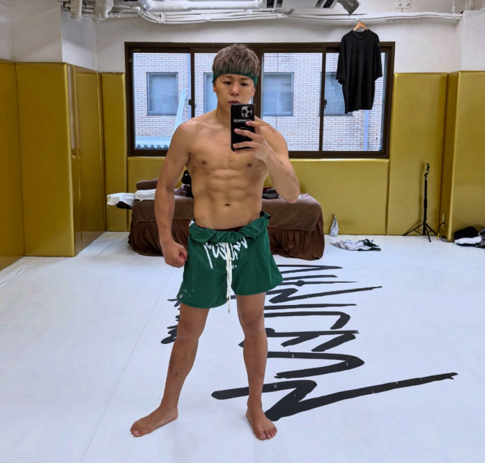 鍛え上げられた腹筋や腕まわりの筋肉がハッキリと浮かび上がっており、11月の試合に向けて体重調整とコンディション作りを着々と進めている様子がうかがえる。合宿スタートに向けた最後の追い込み時期と見られ、ベストな状態でリングに戻る決意が伝わってくる内容だ。