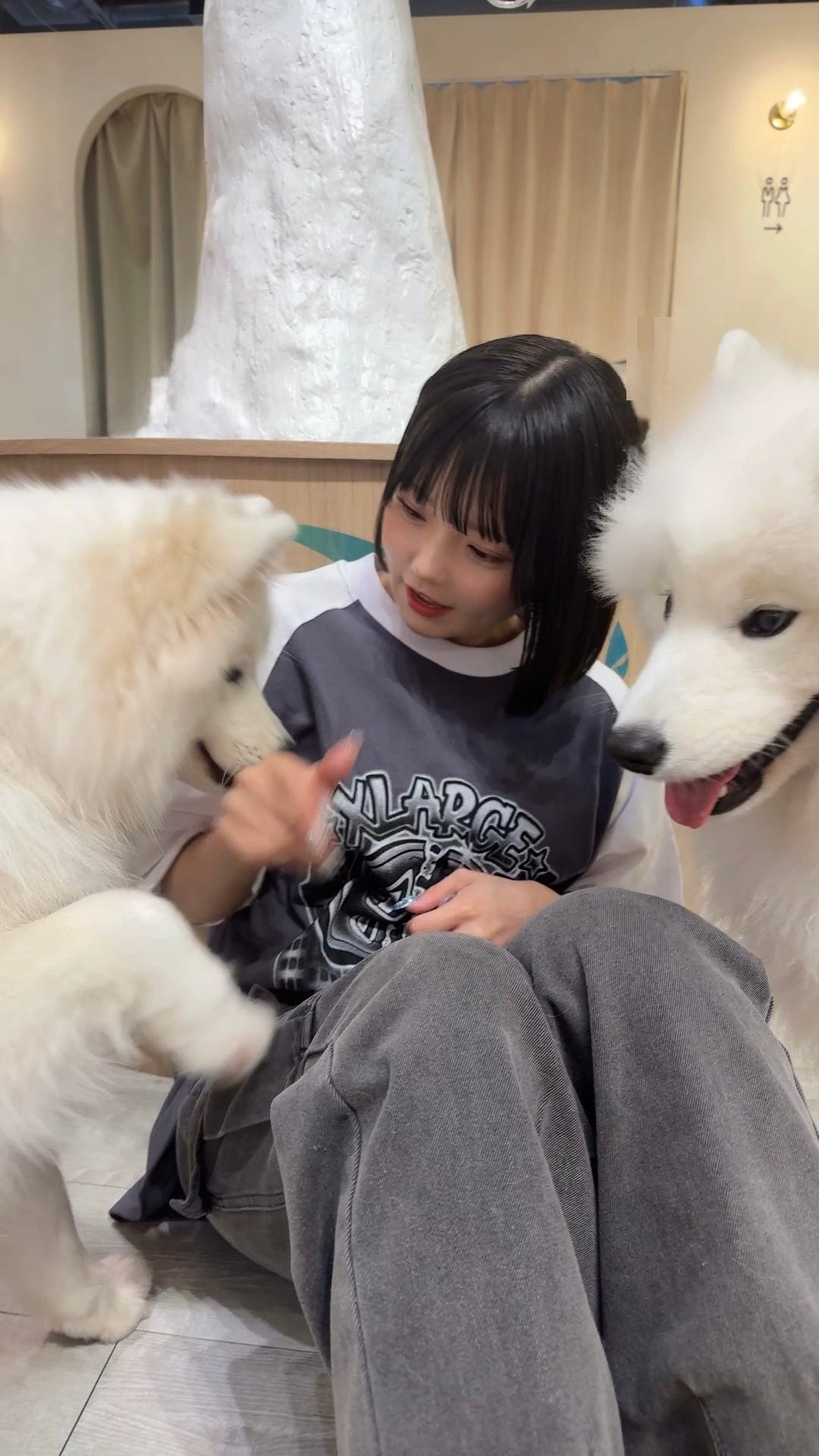 「天使がサモエドに囲まれてる」CANDY TUNE・福山梨乃の癒やしすぎるカフェショットが話題に | 話題の投稿