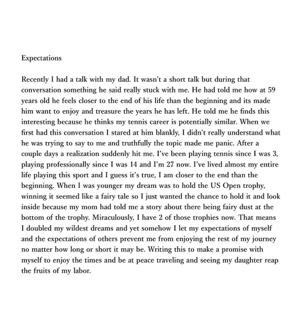 「ただ頭の中にあったことを吐き出したかっただけなんだけど…」大坂なおみ、インスタに長文投稿!"自分自身への約束"が話題に | 話題の投稿