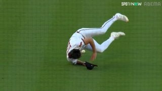 一体何があった!?エンゼルス菊池雄星がマウンド上で派手にすってんころりん!捕球できずにガックリ顔 | ABEMA