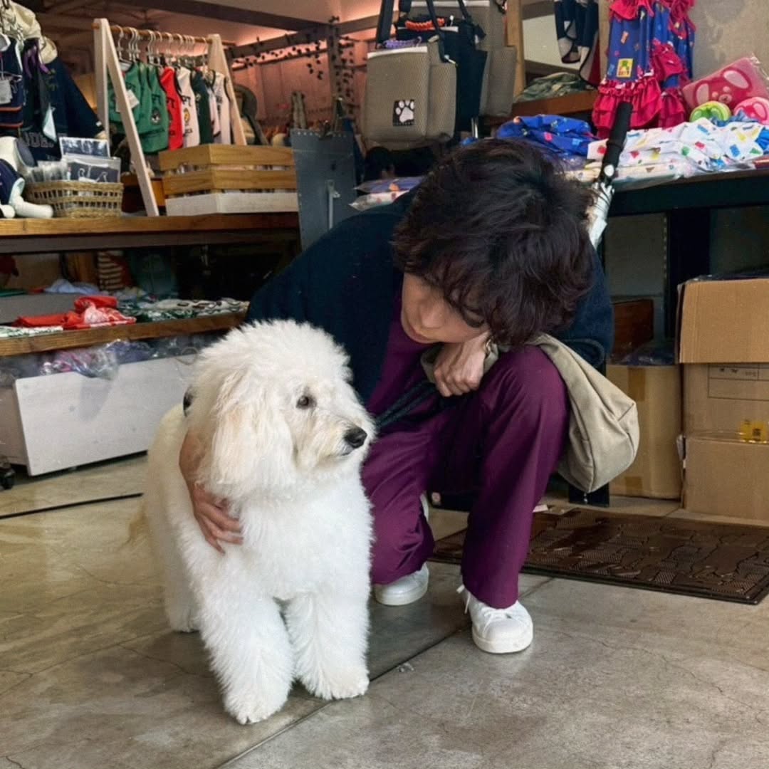 成田凌が共演ドッグとふわふわヘアのオフショット披露で「どっちがいぬ?」「どっちももふもふで可愛すぎる」