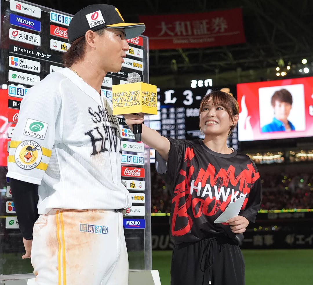 岡田桃佳が初のヒーローインタビューを終える「もっと選手の良さを引き出せるインタビューができるように」 | 話題の投稿