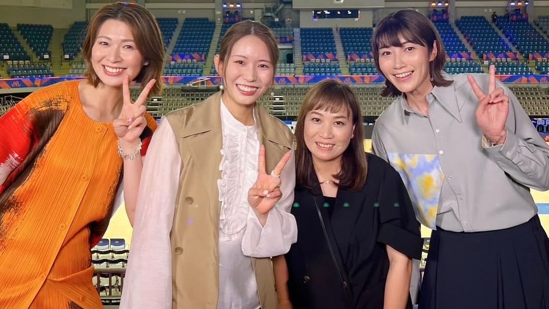 「JPN×FRA 3-0で日本が勝ちました!!!この勢いで明日も絶対勝つ!!!ぜひ皆さんも応援よろしくお願いします」と綴り1枚の写真をアップ。元女子バレー日本代表・木村沙織、古賀紗理那、竹下佳江との笑顔4ショットを公開。明日は韓国との対戦を予定しており、再び勝利を掴んで欲しいものだとファンも期待が高まっている投稿となっている。