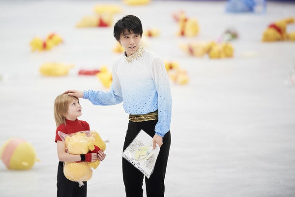 演技後、氷上で笑顔も見せていた羽生
