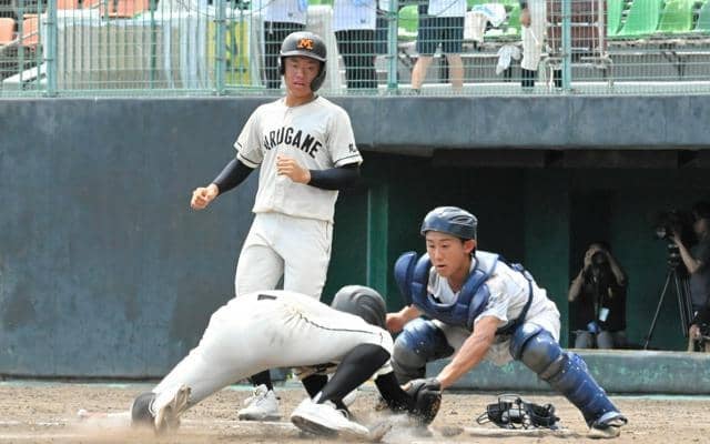 三回裏2死満塁、高松桜井はピンチを迎えていた。相手の適時打で三塁走者に生還を許したものの、続いて突っ込んできた二塁走者は、捕手の杉本遼介主将(3年)が本塁で食い止め、追加点を許さなかった。
