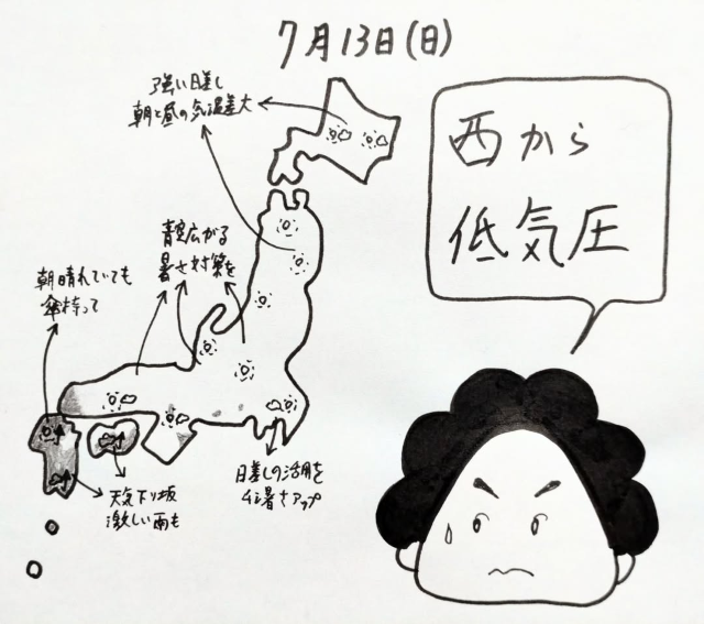 【画像】「暑さと雷雨に気をつけて」気象予報士・くぼてんきが"イラスト天気予報"を更新!