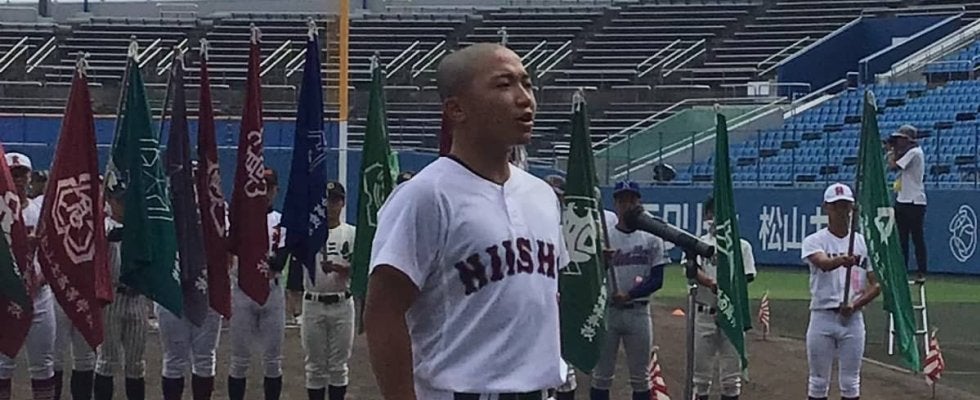 そして「父親と一緒に文章を考え、国語の先生に添削してもらった上で、毎日練習最後にチームメイトの前で練習していた」選手宣誓の内容は、野球への愛、対戦相手へのリスペクト、「全員野球・全力勝負」。最後に「野球王国愛媛復活」まで網羅した素晴らしいもの。1975年・第58回大会の初出場での全国準優勝をはじめ、2度の夏甲子園出場、実に46年ぶりの古豪復活を目指す新居浜商にとっても大きな推進力を呼ぶものだった。