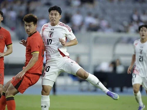 香港戦のWBは166センチの相馬勇紀(左)と167センチの久保藤次郎(右)だった。後半、久保に代わって出場した佐藤龍之介も171センチである。また、この中国戦に左WBとして先発した俵積田晃太も175センチだ。事実上のA代表でWBを務める三笘薫(178センチ)、堂安律(172センチ)らも軽量級である。