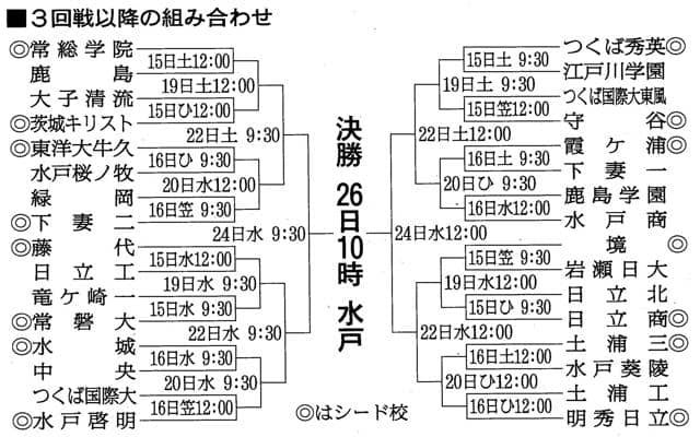 開催中の第107回全国高校野球選手権茨城大会について、茨城県高校野球連盟は13日、3回戦以降の組み合わせを発表した。(…