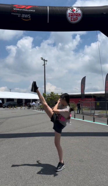 元レースクイーン"9頭身"美女モデル、サーキットで見せたショーパン美脚うなるハイキックムービーにファンの視線釘付け!