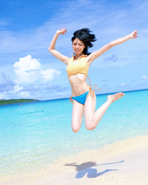 「夏の女神に癒されました」腹筋アイドル美女子、"シックスパックの魅力全開"波打ち際のビキニハイジャンプショットにファン歓喜! | 話題の投稿