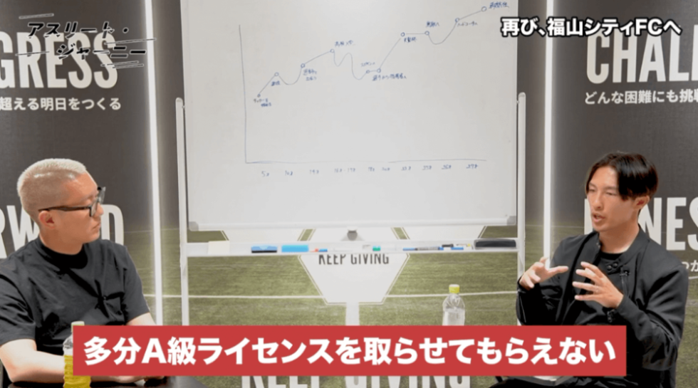 一番は、指導者ライセンスを取りたかった、ということですね。福山でそのシーズンで昇格できる可能性が無くなってしまったときに、Jクラブに移ってライセンスを取りにいくという決断をしました。