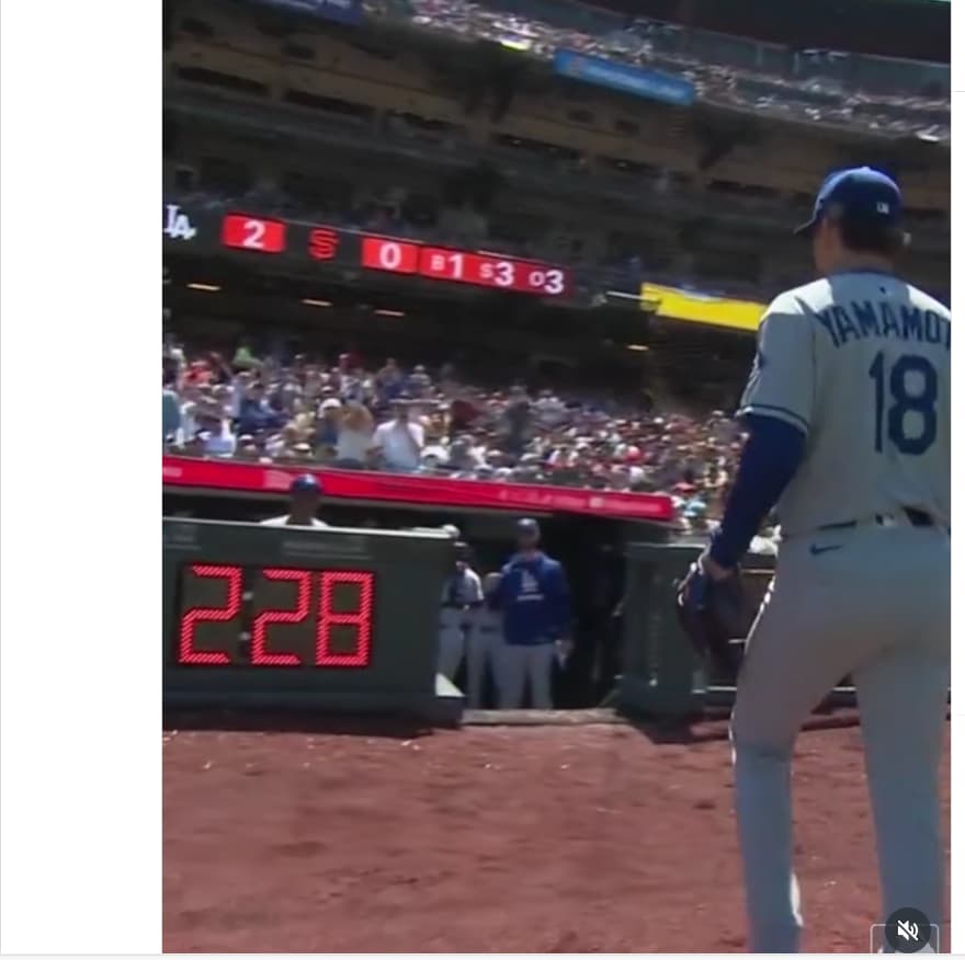 ドジャース山本由伸、7回まで91球を投げて3安打無失点&7奪三振でジャイアンツ打線を抑え込む!! | 話題の投稿