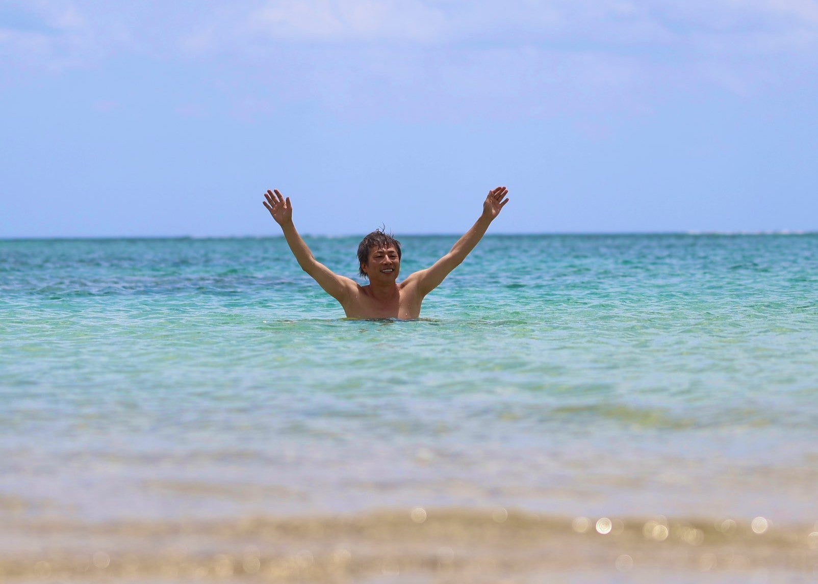 田村淳、奄美大島の海でリフレッシュ!両手を挙げて大自然を満喫 | 話題の投稿