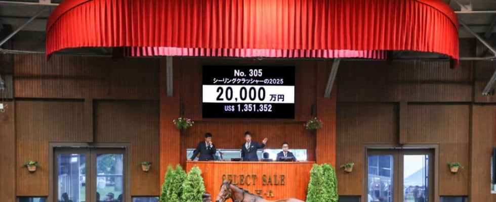 7月15日、北海道苫小牧にあるノーザンホースパークで、日本最大のサラブレッド市場「セレクトセール2025」の2日目が開…