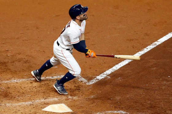 アストロズのホセ・アルトゥーベ内野手が21日(日本時間22日)、本拠地で行われているヤンキースとのリーグ優勝決定シリーズ第7戦で、5回に貴重なソロ弾を放った。