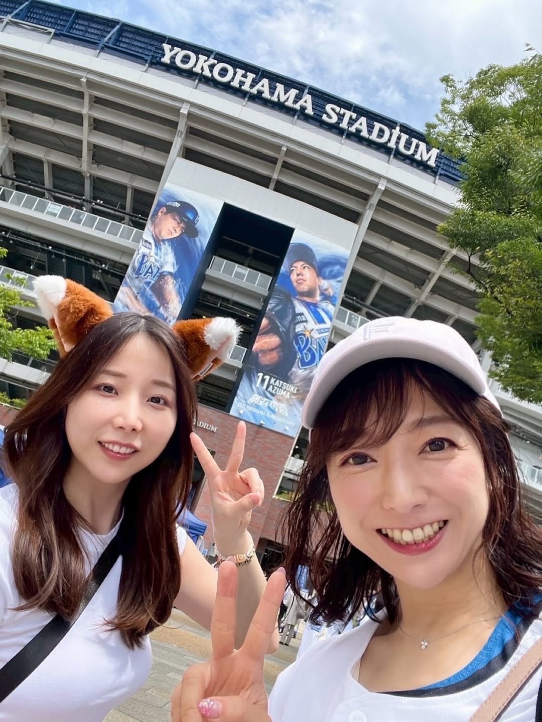 気象予報士・星井彩岐、佐藤彩にファイターズ戦に誘われ横浜スタジアム前で爽やかなツーショットを公開!