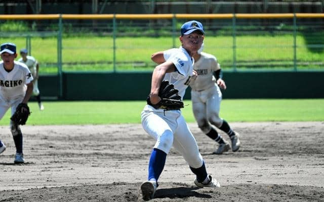 左打者が並ぶ報徳学園に対し、中田雄介監督がマウンドを託した左腕。「自分のピッチングができたら抑えられる」と信じ、内角を攻めて打たせてとる投球を心がけた。