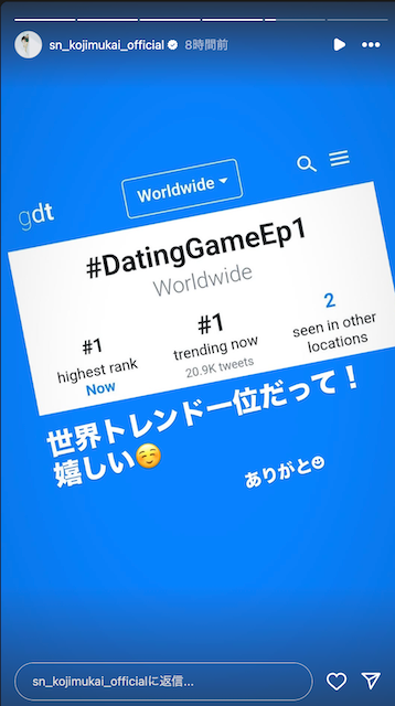 世界トレンド1位に歓喜!向井康二の投稿が話題に | 話題の投稿