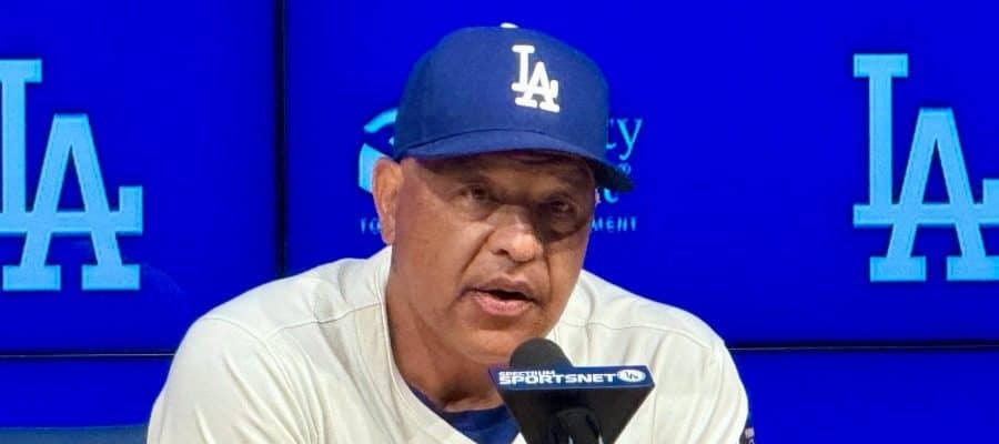 試合後、取材に応じるドジャースのデーブ・ロバーツ監督【写真:小谷真弥】
