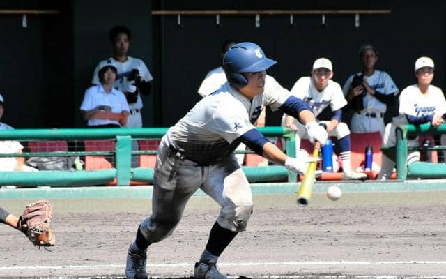 5点を追う六回裏、無死一、二塁の好機で高石の4番打者、木村丈太朗捕手(3年)に打席が回った。決めたのは投手の前への送りバント。木村捕手は「4番を打っているが、バントは大切。良い仕事ができた」と言う。