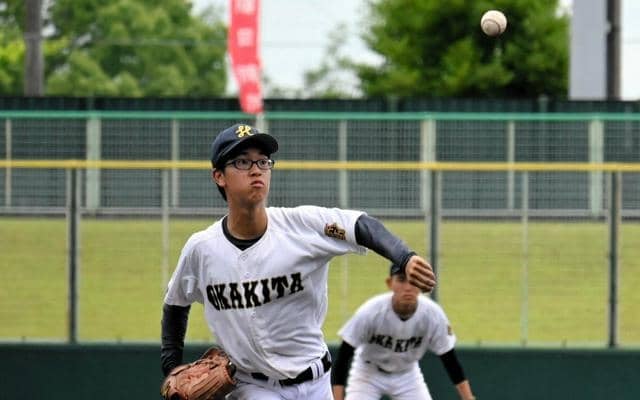 最速110キロに満たない直球を「少しでも速く見せたい」と、昨春から元プロ野球選手・星野伸之さんらの映像を参考に投げ始めたという。最遅で55キロというこの球で見逃しのストライクを取り、その後の直球で打者を打ち取った。