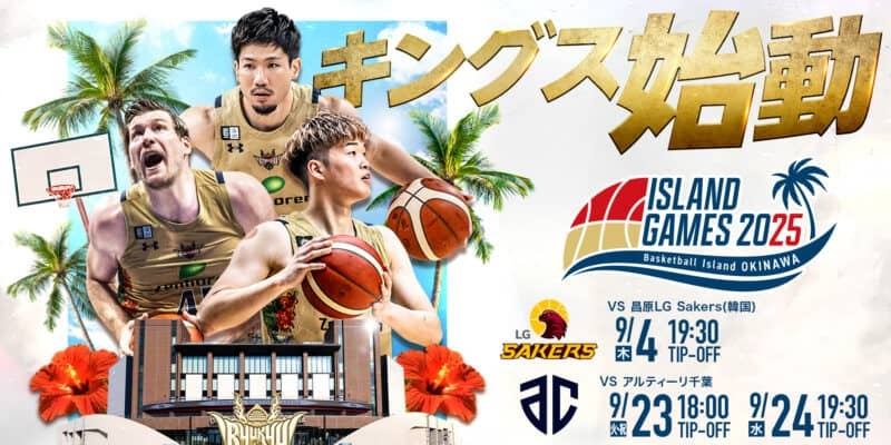 7月21日、琉球ゴールデンキングスは、9月に「ISLAND GAMES 2025」と題したプレシーズンマッチを開催することを発表した。ホームの沖縄サントリーアリーナに、KBL(韓国プロバスケットボールリーグ)王者の昌原LG Sakersと、昨シーズンのB2王者であるアルティーリ千葉を迎える。