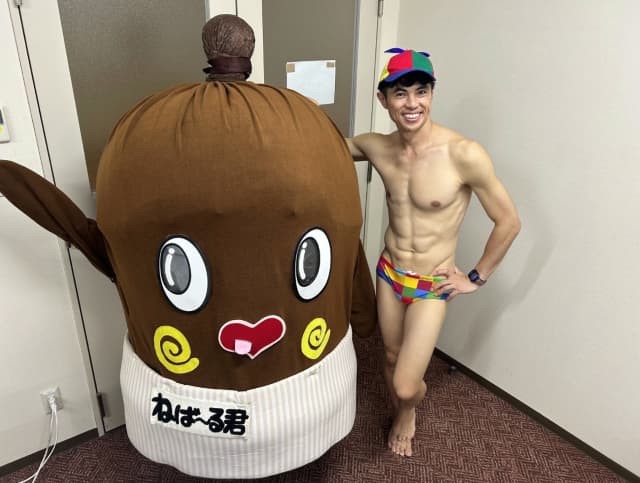 小島よしおがねばーるくんとはっぴょんくんとツーショットを披露