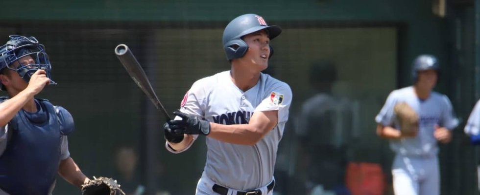 横浜が劇的勝利で平塚学園を破って4強入りを決めた。4回を終わって0対4とリードされたが、5回、7回、8回と1点ずつを奪って、1点差で迎えた9回に、主将の阿部 葉太外野手(3年)の逆転の2点適時二塁打で、5対4のサヨナラ勝ち。チームのピンチを頼れるスラッガーが救った。