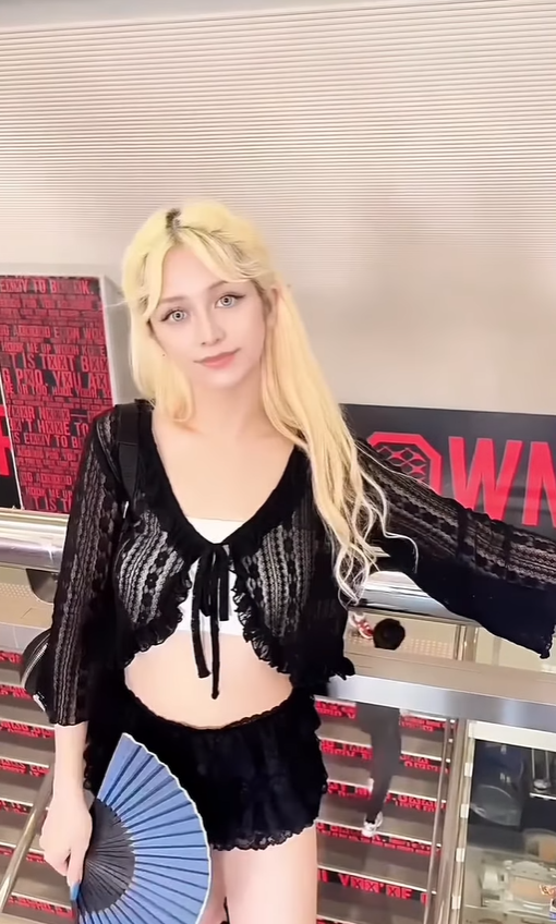 黒赤の印象的な背景に立つ金髪の美女──。BreakingDown16の現場に登場したのは、モデルさながらの存在感を放つh…