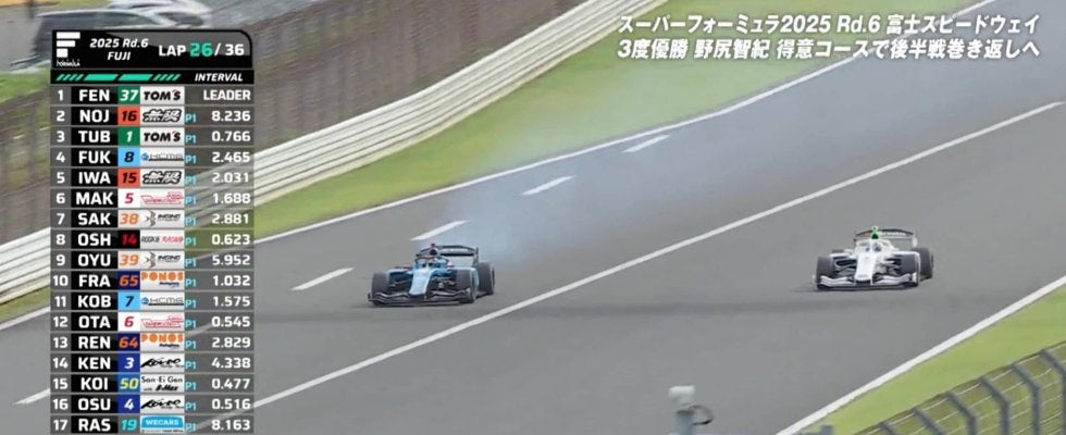【スーパーフォーミュラ】第6戦(決勝・7月19日/富士スピードウェイ)【映像】突如、白煙を上げ“急失速”(実際の様子) …