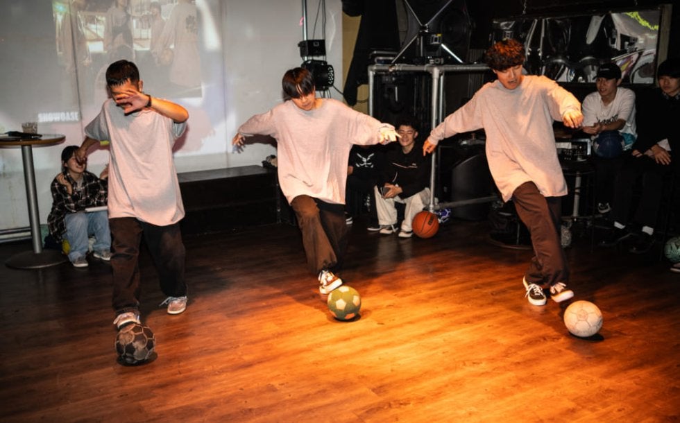 フリースタイルフットボーラー・バスケットボーラーが音楽に合わせて、各々のテクニックと息の合ったルーティンを披露。ボールを用いたスキルだけではない、表現としてのフリースタイルに注目だ。