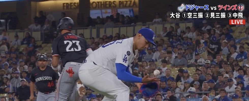 ドジャースの大谷翔平投手が「2番・DH」でスタメン出場したツインズ戦で7回、チームにとって痛恨とも言える“大暴投”が飛び出した。実況・解説陣も厳しい言葉を口にし、守備に就いていたフリーマンも呆然とする場面が話題となった。