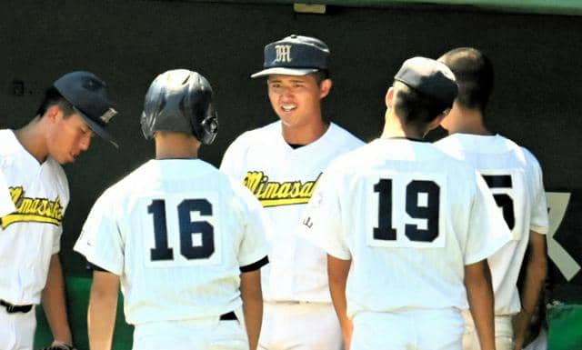 試合が終わり、両チームが整列しあいさつ。対面する倉敷商の佐藤拳吾主将に「甲子園に行ってね、頼んだよ」と声をかけ、抱擁して健闘をたたえ合った。吉田章彦監督は「選手たちはハングリー精神で、気持ちで引くことなく戦ってくれた」とたたえた。