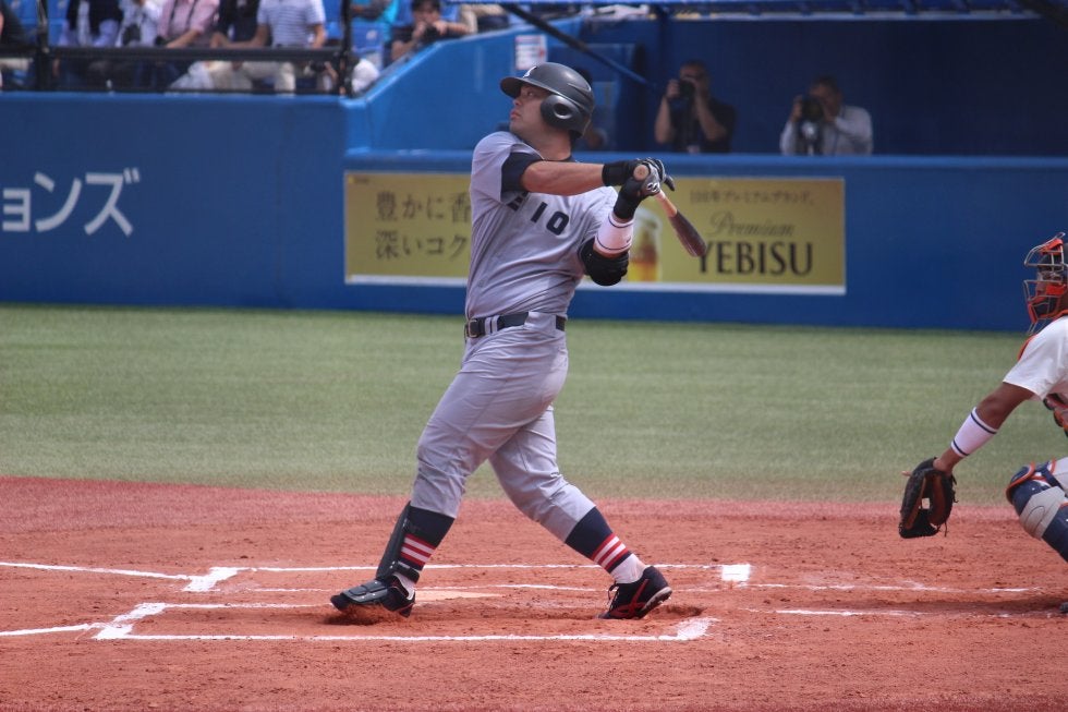 比叡山高時代は、高校通算47本塁打を放った。当然多くの大学から誘いを受けたが、憧れていた慶大に一浪を経て入学した。