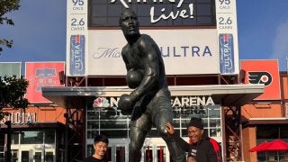 中谷潤人が元世界ヘビー級王者と訪れたモハメド・アリのライバル「ジョー・フレージャー」像を前に「僕も、そんなレベルのチャンピオンになりたい」